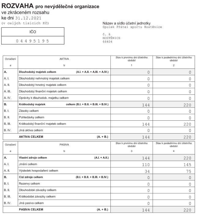 Výroční zpráva Spolku Přátel sportu Hostěnice (SPsH) za rok 2021